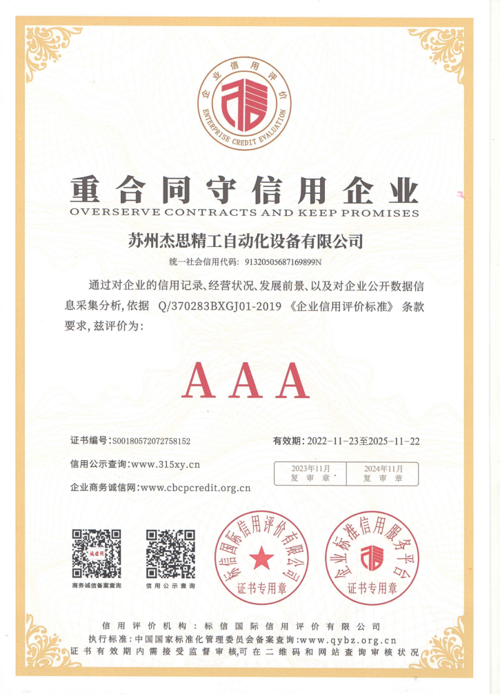 蘇州杰思精工自動化設(shè)備有限公司本著“高質(zhì)量,優(yōu)服務(wù),求發(fā)展”的精神,